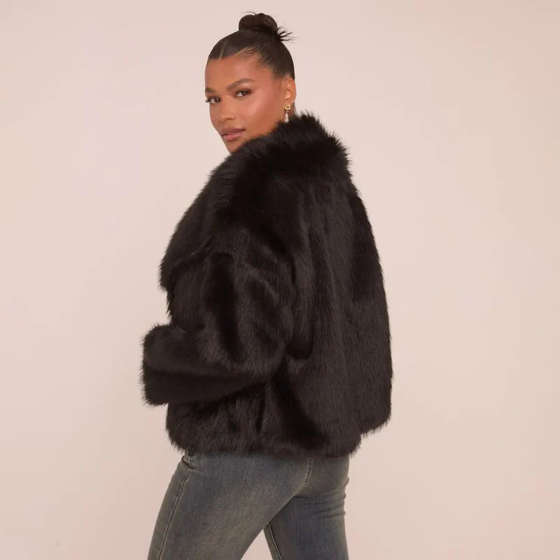 Effortlessly elevate any outfit with this versatile faux-fur coat. With a rich texture and eye-catching color, it stands out in any wardrobe. Thoughtfully designed for comfort, warmth, and style, it pairs beautifully with jeans for daytime or a chic dress for an evening out. Make every occasion feel special while staying cozy and elegant.